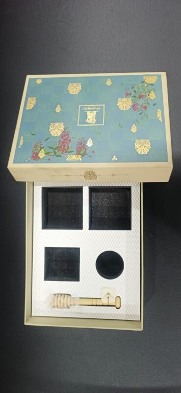 “Luxury honey jar gift packaging with inserts”